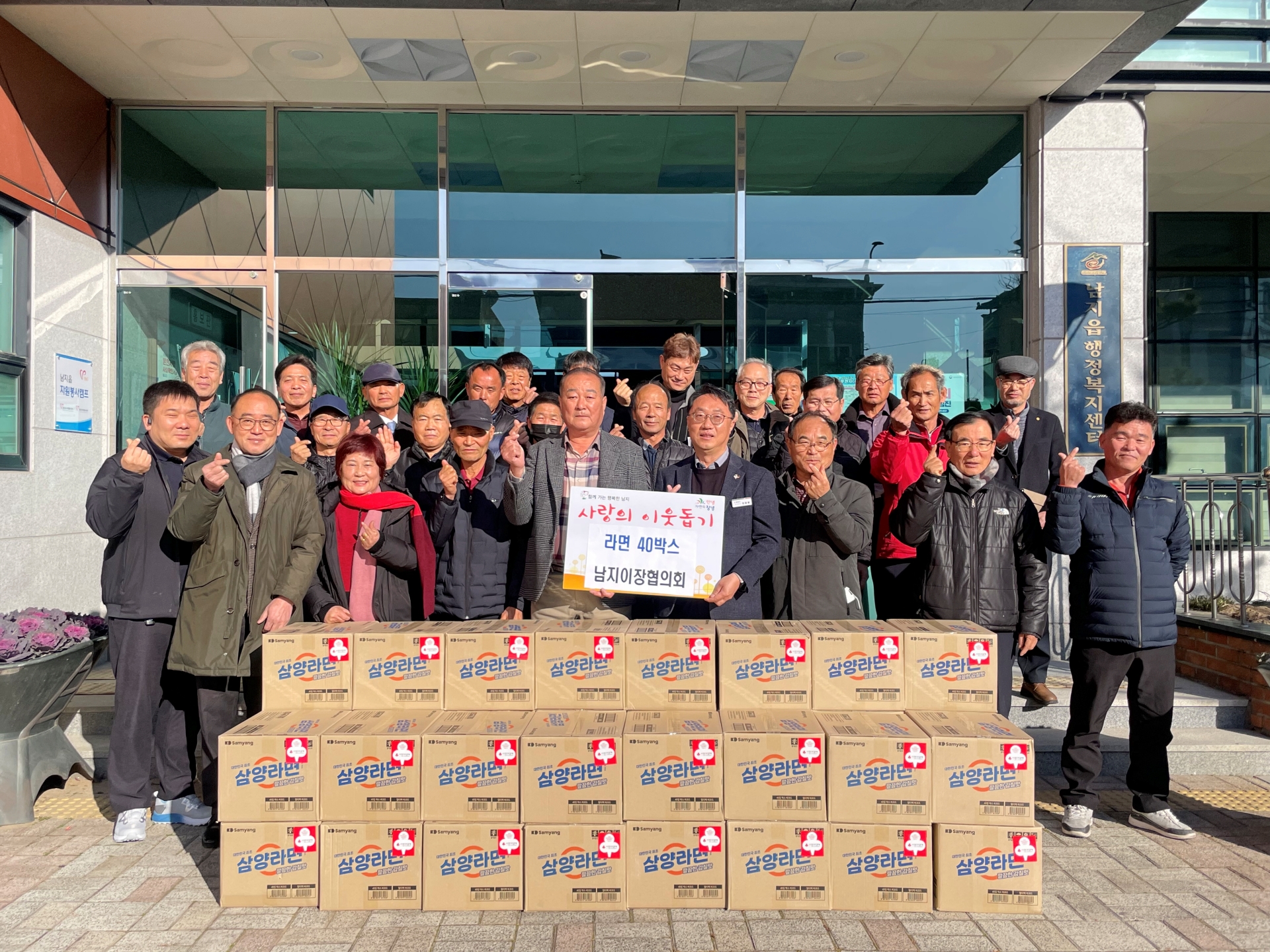 창녕군 남지읍행정복지센터는 지난 7일 남지읍 이장협의회(회장 손유희)가 관내 어려운 이웃들에게 전달해 달라며 라면 40박스를 기탁했다고 밝혔다.