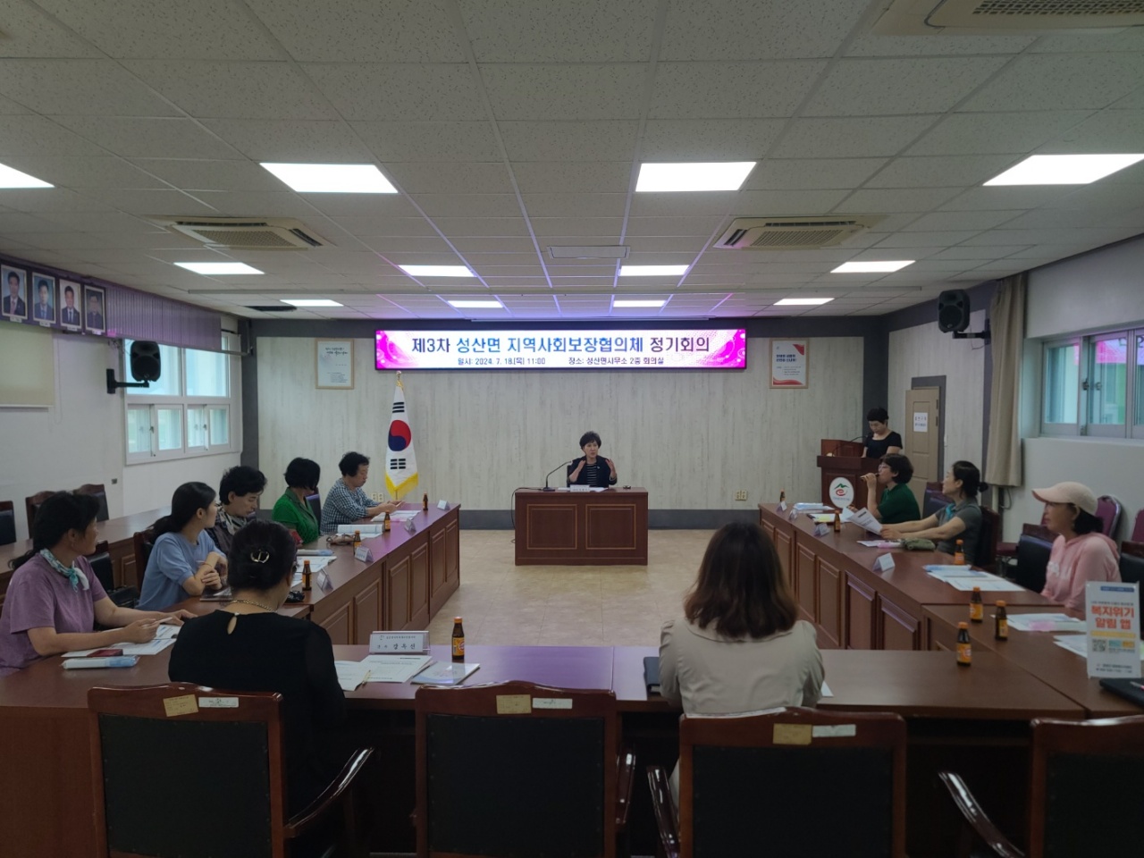 성산면지역사회보장협의체는 지난 7월18일 명예사회복지공무원, 희망이장 등과 함께 성산면사무소에서 제3차 정기회의를 개최했습니다.이날 회의에서는 신규위원에 대한 위촉장 수여와 하반기 신규 특화사업 추진방향에 대해 논의하였습니다.