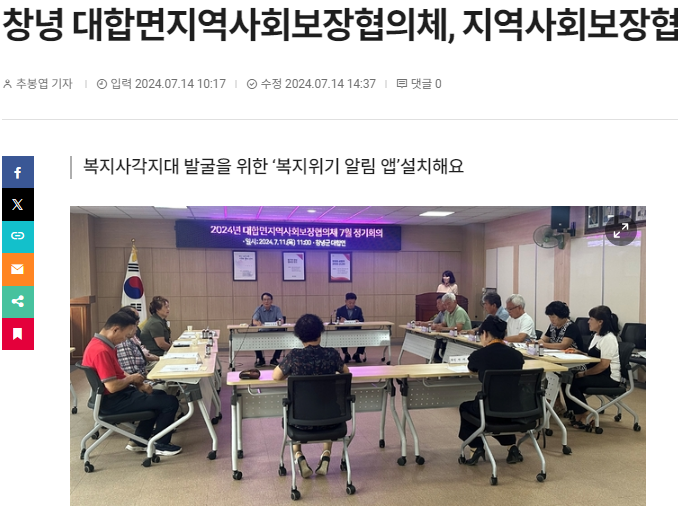 대합면지역사회보장협의체(공동위원장 김종환, 노기현)는 지난 11일 대합면사무소 2층 회의실에서 2024년 지역사회보장협의체 7월 정기회의를 개최했다.