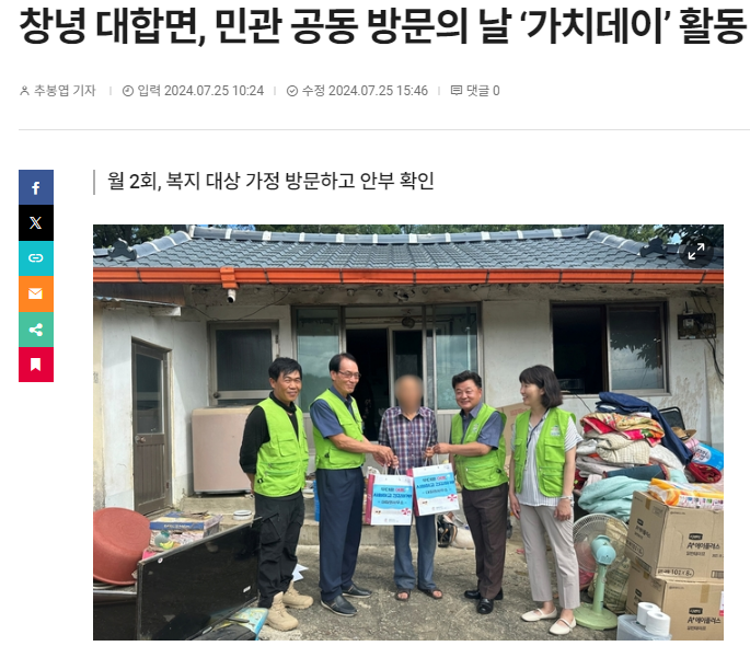 창녕군 대합면은 지난 24일 인적 안전망을 강화하고 복지 사각지대를 발굴하기 위해 ‘가치데이’ 활동을 실시했다고 밝혔다.