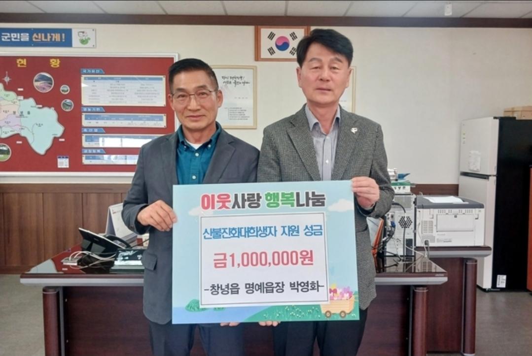 창녕군 창녕읍은 박영화 명예읍장이 산청군 산불진화대 희생자 지원을 위한 성금 100만원을 기탁했다고 밝혔다.